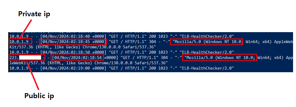 1. NLB에서 "IP타입"으로 TG생성 후 EC2로 패킷을 흘려보내면 EC2 내의 엑세스로그에 NLB 내부 ip로 들어오는것이 기록 된다.