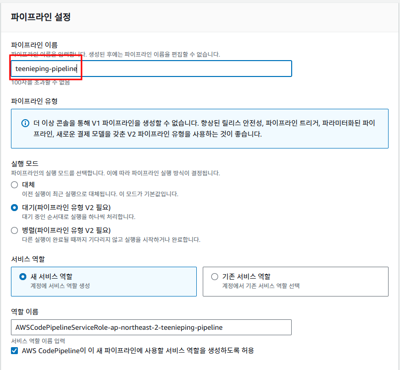 9. 파이프라인 이름을 입력하고 넘어갑니다.