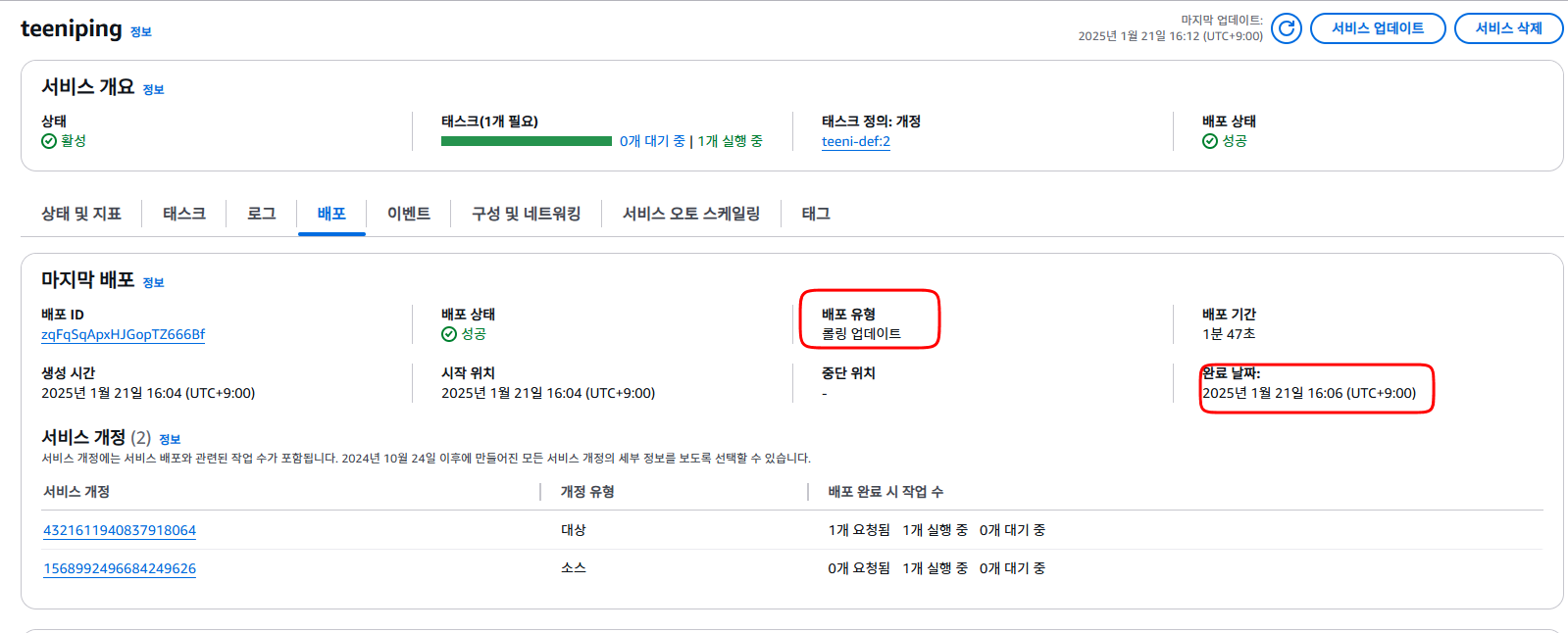 실제로 ECS에 서비스로 가보면 서비스가 재배포 되었음을 확인 할 수 있다