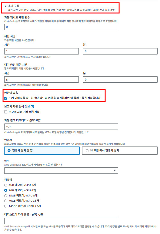 pre_build에 3변수 및 post_build부분에 서비스명을 작성해 준다.