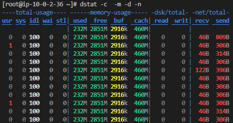 - dstat은 다양한 시스템 성능 정보를 통합하여 실시간으로 모니터링할 수 있는 강력한 도구
