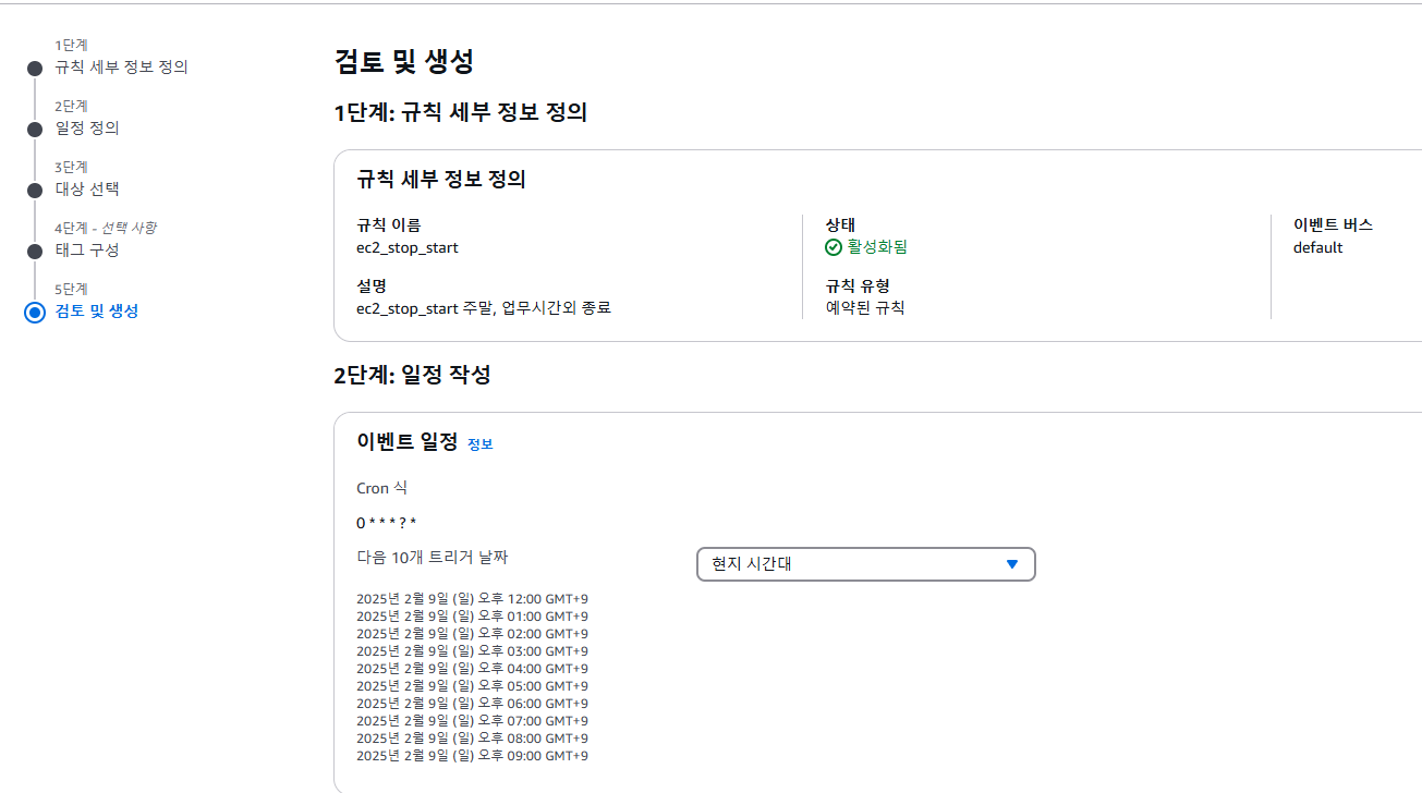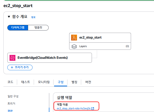 Description: EC2 인스턴스를 주말에는 종료하고, 평일 오전 8시~오후 6시까지 실행하는 Lambda & EventBridge 설정