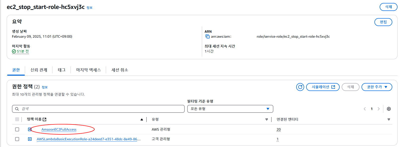 2. lamda함수에 ec2 관련된 IAM권한을 추가한다.