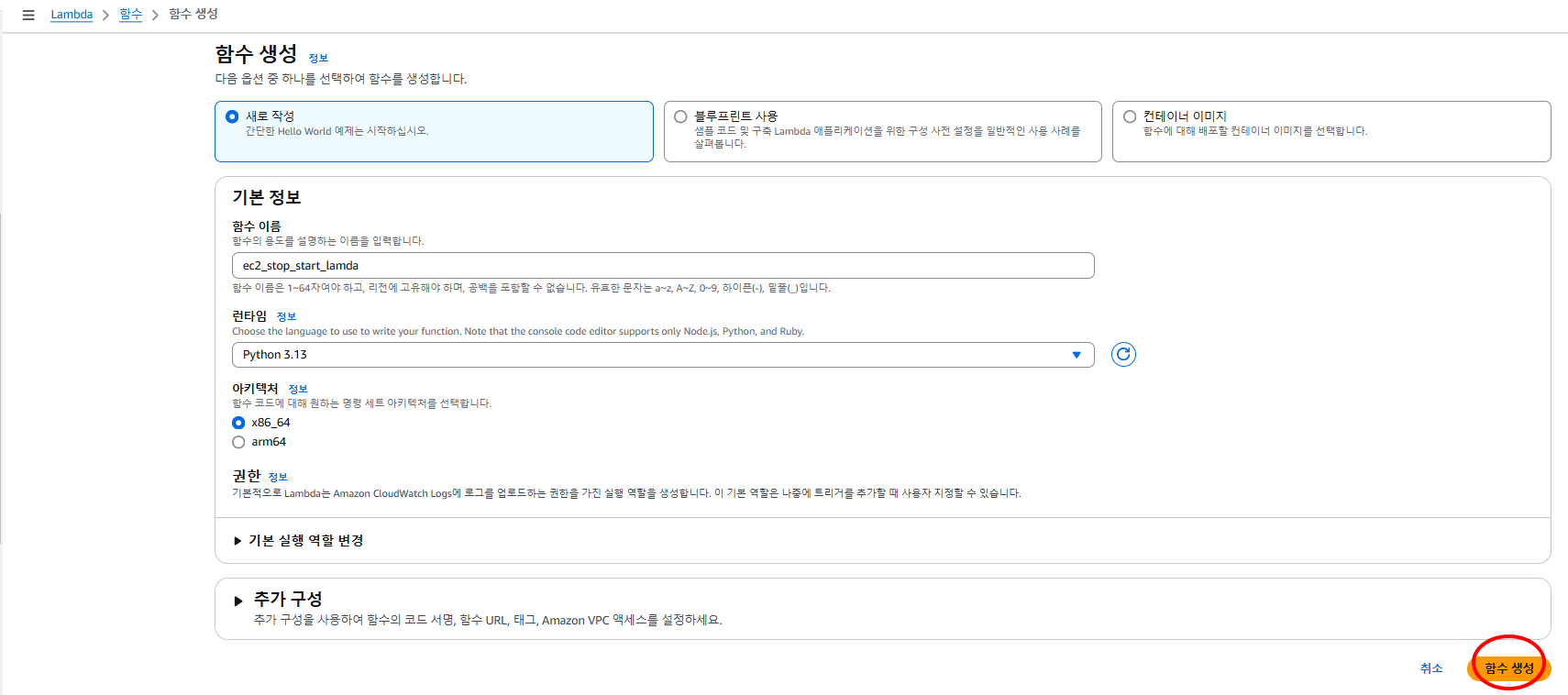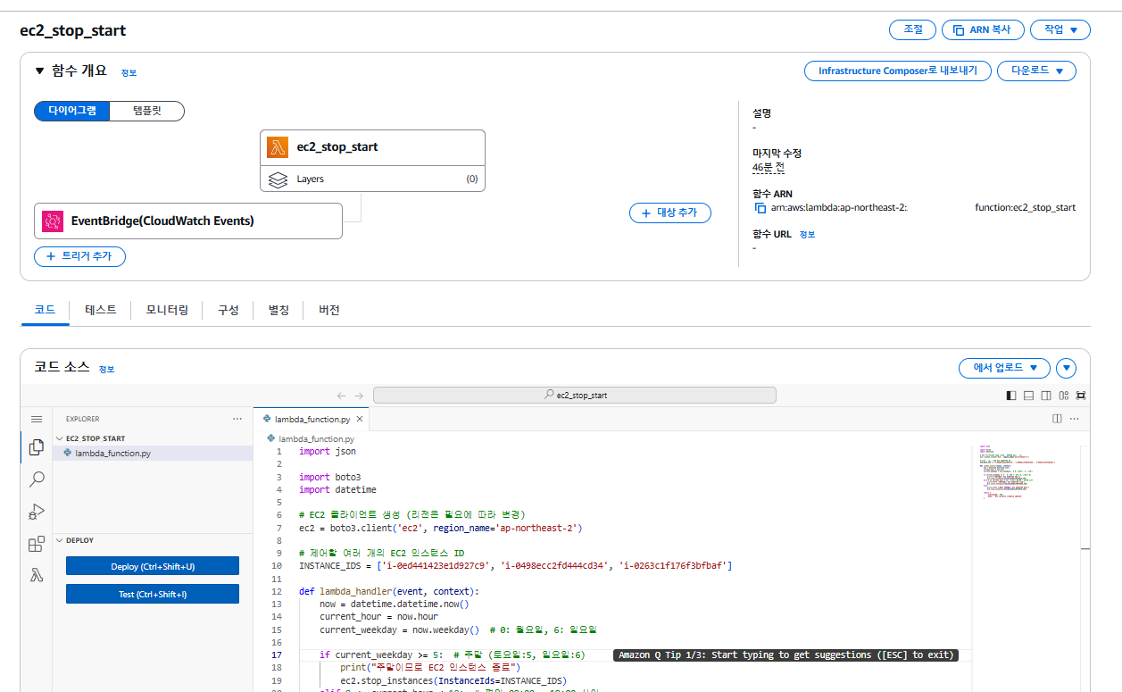 1. 시간에 따라 ec2를 start, stop 하는 lamda 함수를 만든다.