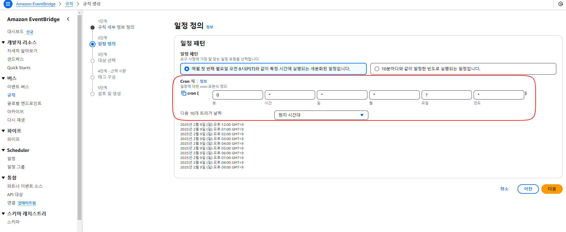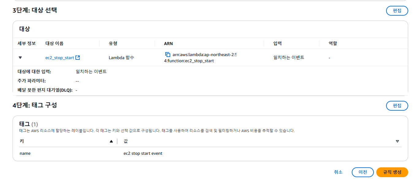 3. Amazon EventBridge를 사용해서 해당 해당 함수를 실행하도록 규칙 및 스케줄을 설정 한다.