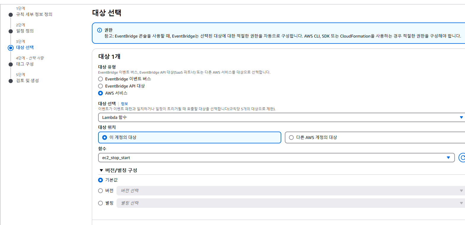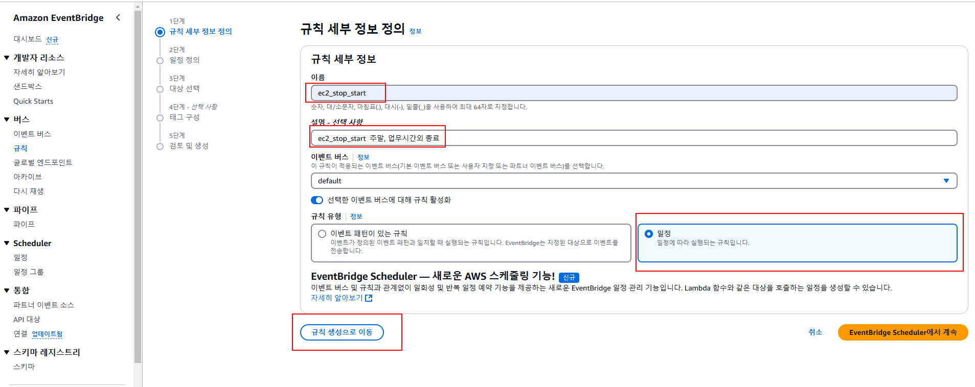 Amazon EventBridge 콘솔 접속 -> 규칙 생성